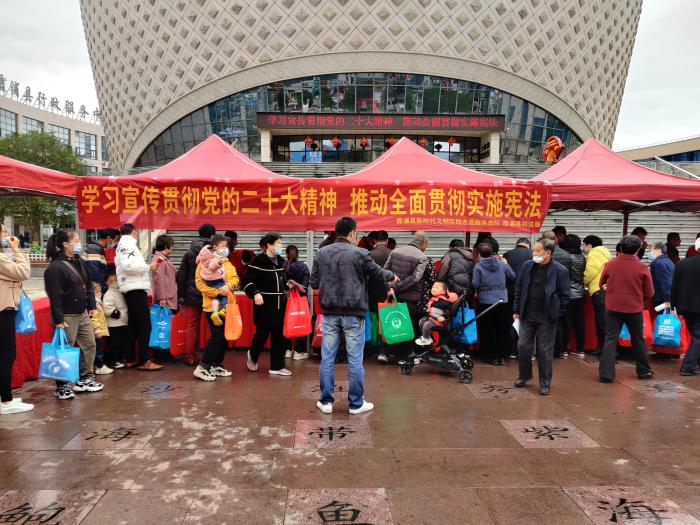 今年12月4日是第九个国家宪法日,也是我国现行宪法颁布实施四十周年。中共365bet体育赌博_怎么无限注册365游戏账号_beat365亚洲体育官网委宣传部、365bet体育赌博_怎么无限注册365游戏账号_beat365亚洲体育官网司法局联合37家县直部门单位,在县九大馆广场举办以“学习宣传贯彻党的二十大精神,推动全面贯彻实施宪法”为主题的365bet体育赌博_怎么无限注册365游戏账号_beat365亚洲体育官网“宪法宣传周”大型广场集中宣传活动,拉开了第五个“宪法宣传周”活动的序幕。