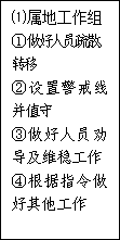 当地乡镇(街道、园区管委会)负责,由事故单位安全保卫人员和当地政府人员组成,负责对周围人员进行防护指导、疏散人员。 |