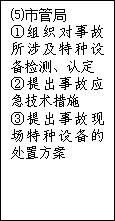 负责组织对事故所涉及的特种设备的检测、认定,提出事故应急技术措施及事故现场特种设备的处置方案。 |