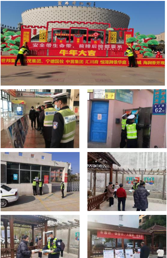 霞浦交警大队、高速交警二大队民警根据春运期间道路交通特点,走进乡村主要街道和人群聚集处通过布置展板、分发安全宣传资料、张贴海报等形式向村民们宣传“一盔一带”等安全防护知识。
